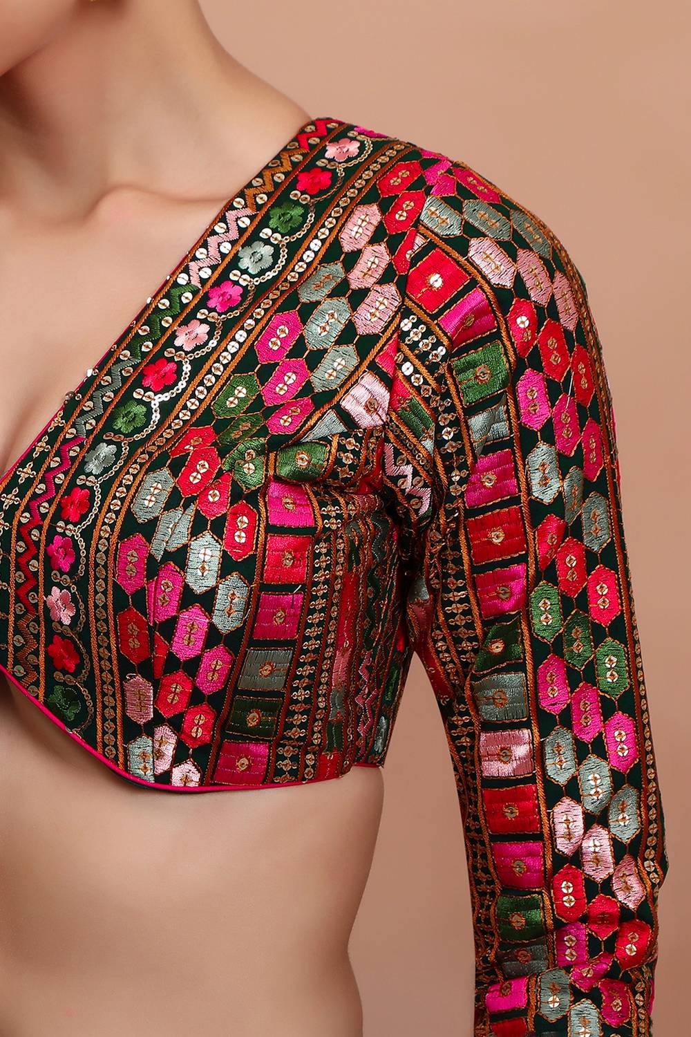 Transform your saree look with our Blouse the ultimate blend of style and comfort. Made from soft and breathable Georgette it ensures a snug yet flexible fit. The intricate Embroidered make this blouse a wardrobe essential. Perfect for Festive it works beautifully with traditional or modern sarees alike. Team it with a silk saree, a bold necklace, and embellished sandals for a sophisticated look. Redefine your saree style with Blouse