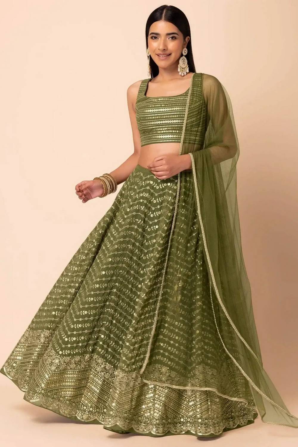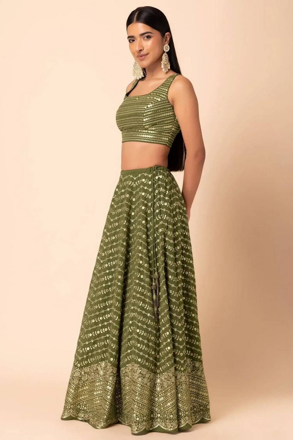 Step into the spotlight with our Lehenga a dazzling creation designed to make your special moments unforgettable. Crafted from premium Georgette this lehenga offers a perfect combination of elegance and ease, keeping you graceful all day long. The exquisite Floral Embroidered makes this lehenga a masterpiece of traditional craftsmanship. Whether it’s Sangeet,Mehendi or a grand celebration, this lehenga is the perfect choice to make a statement. Pair it with an ornate choker, a matching dupatta, and embellished stilettos to complete the regal look. Add a sleek bun or cascading curls for added glamour. Make every moment magical with the timeless allure of Lehenga