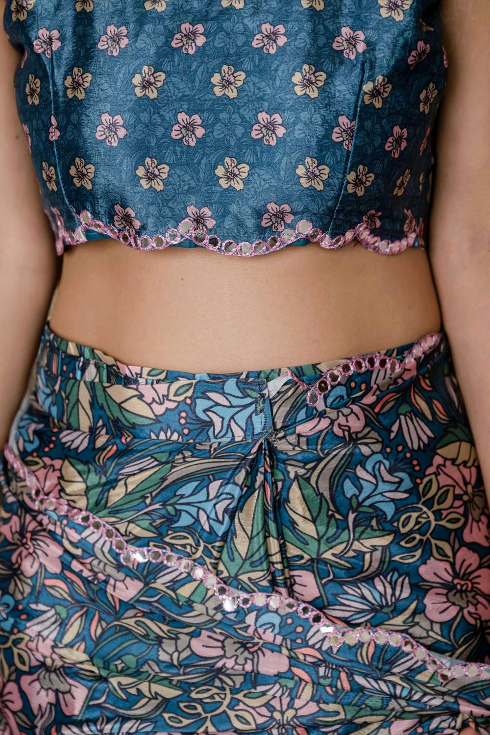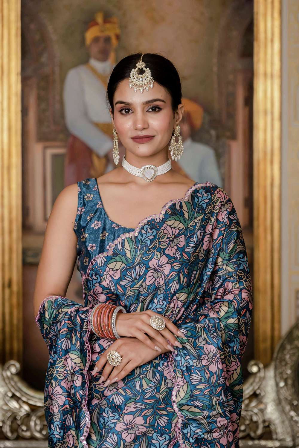 Elevate your wardrobe with our exquisite Ready to Wear Saree a masterpiece crafted to add timeless elegance to your style. Made from Chinon this saree offers a perfect mix of comfort and sophistication. Adorned with Floral Printed it showcases intricate craftsmanship that speaks volumes of tradition and artistry. Perfect for Party this saree is a versatile addition to your collection, ensuring you stand out effortlessly. Pair it with elegant Jewelry, for a glamorous look. Add Clutches or Potli Bags and complete the ensemble with Wedges & Heels , making it a perfect choice for any event. Make a statement and embrace the elegance of Saree today