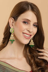Green Gold-Plated Kundan And Pearls Jhumka Earring