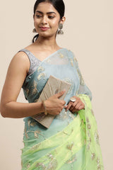 Elevate your wardrobe with our exquisite Saree a masterpiece crafted to add timeless elegance to your style. Made from Organza this saree offers a perfect mix of comfort and sophistication. Adorned with Gotta Patti it showcases intricate craftsmanship that speaks volumes of tradition and artistry. Perfect for Partywear this saree is a versatile addition to your collection, ensuring you stand out effortlessly. Pair it with elegant Jewelry, such as glamorous look. Add Clutches or Potli Bags and complete the ensemble with Wedges & Heels , making it a perfect choice for any event. Make a statement and embrace the elegance of Saree today
