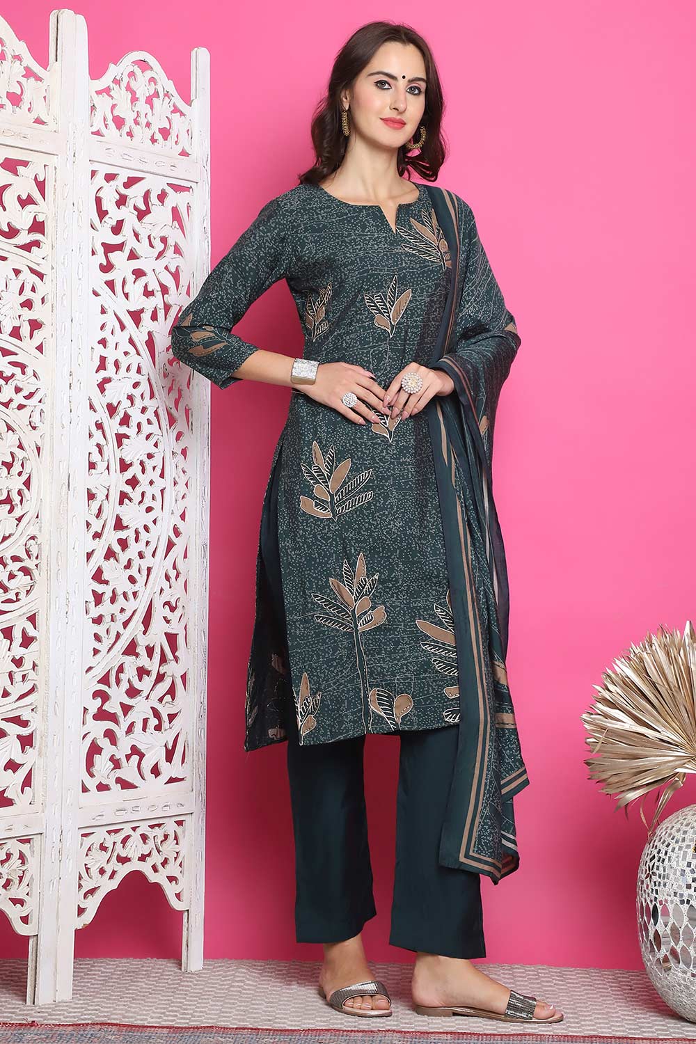 Step into elegance with our Green Muslin Digital Printed Kurta Suit Set , featuring exquisite digital patterns on breathable muslin.