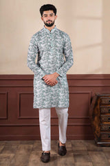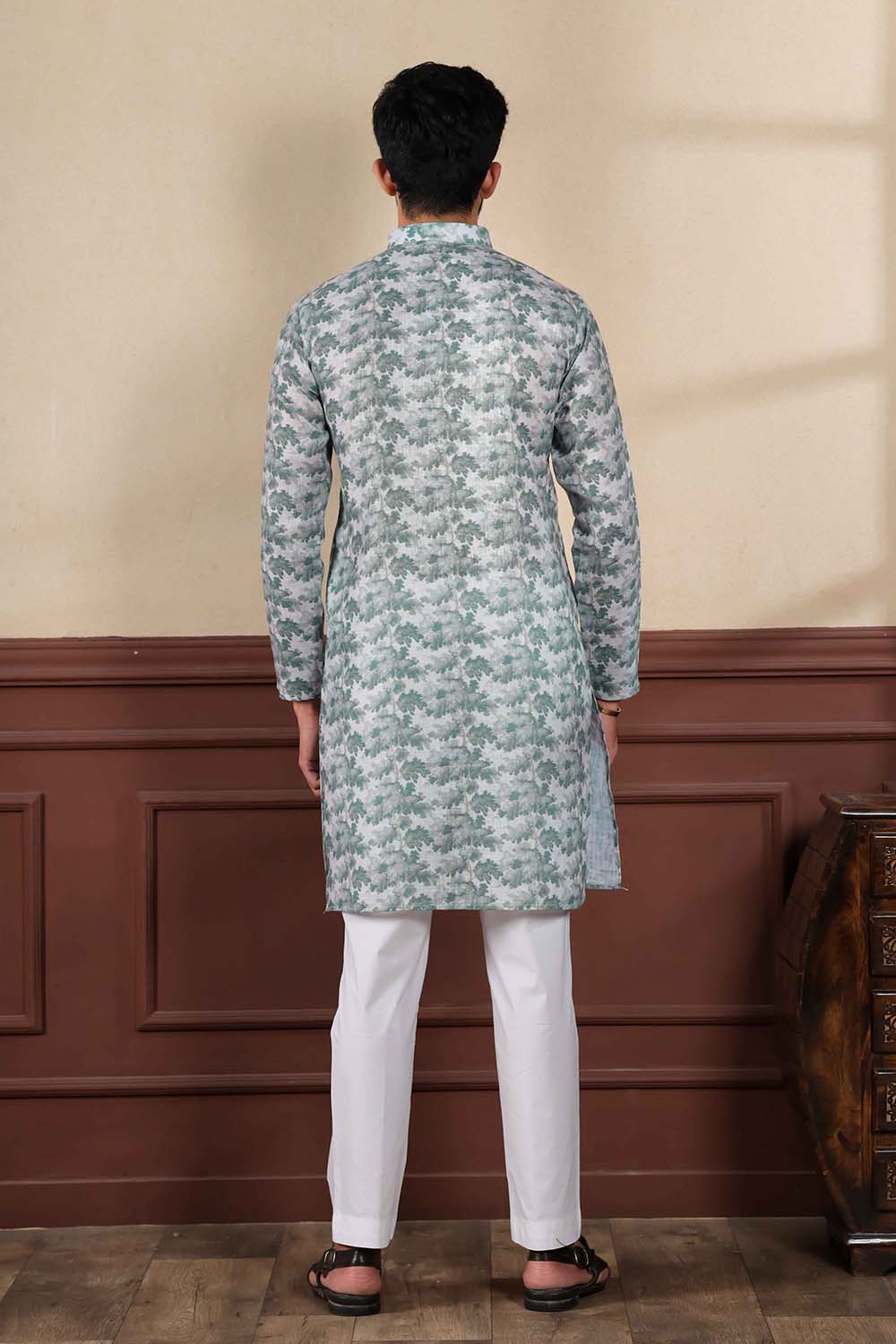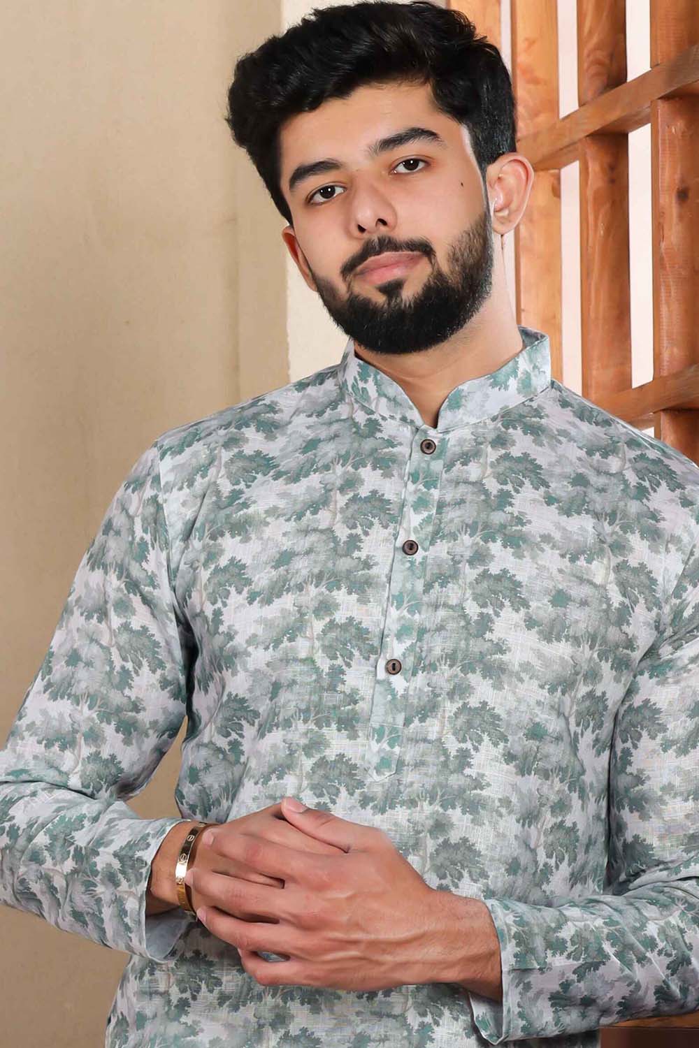 Dress him in elegance with our Men's Kurta Sets a classic Kurta Set designed for timeless style. Crafted from soft Linen it offers a comfortable fit for all-day wear. The intricate Printed adds a traditional touch to this outfit. Perfect for Festivewear, this Kurta Set is a versatile choice for any festive or formal occasion. Pair it with white churidar pants and traditional juttis for a complete ethnic outfit. Make every moment special with the charm of Kurta Set