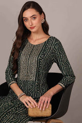 This Green Rayon Embroidered Round Neck Kurti is a timeless choice for any occasion. The intricate prints add a touch of sophistication to the ensemble, while the comfortable rayon fabric ensures effortless elegance and ease throughout the day.