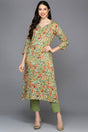 Green Rayon Floral Print Keyhole Neck Kurti