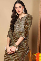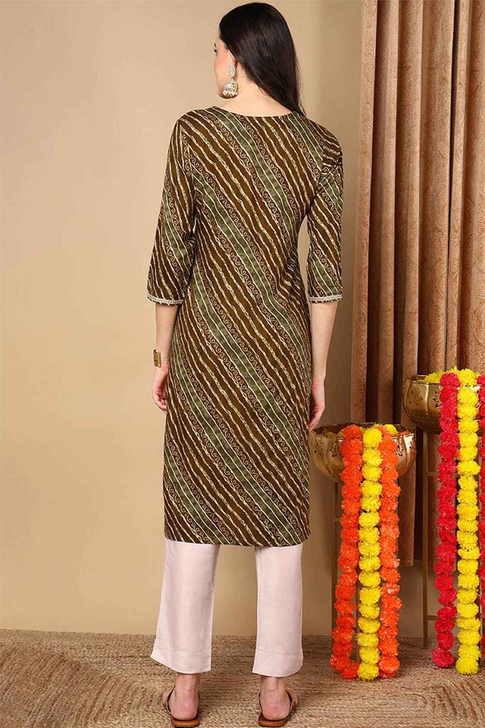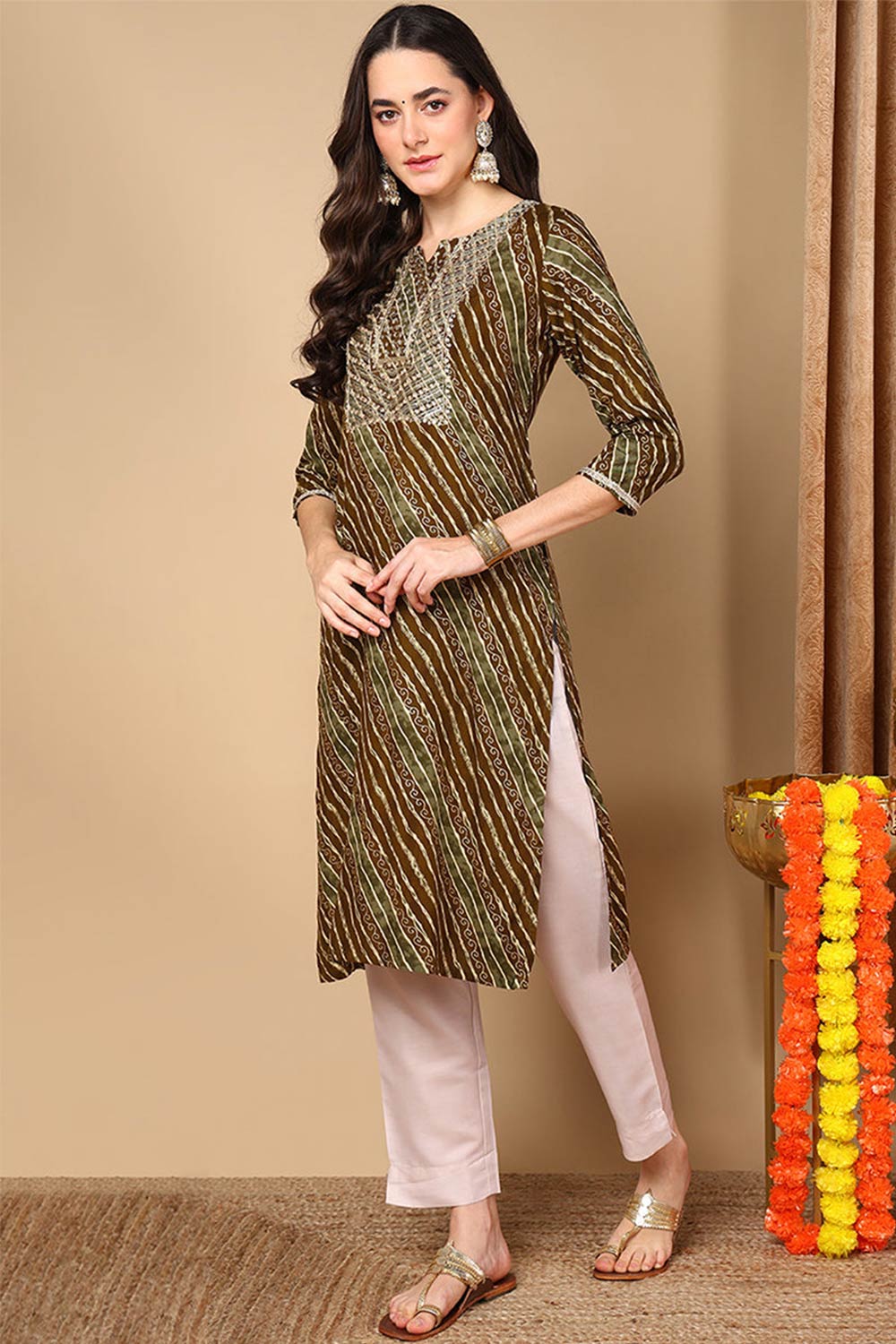 This Green Rayon Leheriya Straight Kurti is a timeless choice for any occasion. The intricate prints add a touch of sophistication to the ensemble, while the comfortable rayon fabric ensures effortless elegance and ease throughout the day.