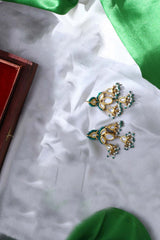 Green, White And Cream Drop Earring With Kundan And Pearls