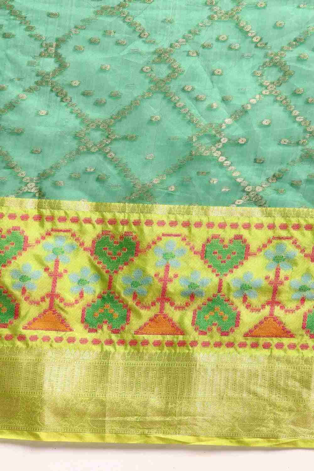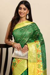 Elegance and Grace both the words are perfect for this beautifuly heavy designer saree that specially designed for the Wedding season, Over a Pallu Ikkat design are there.This saree is from Silk Land on Karma Place.