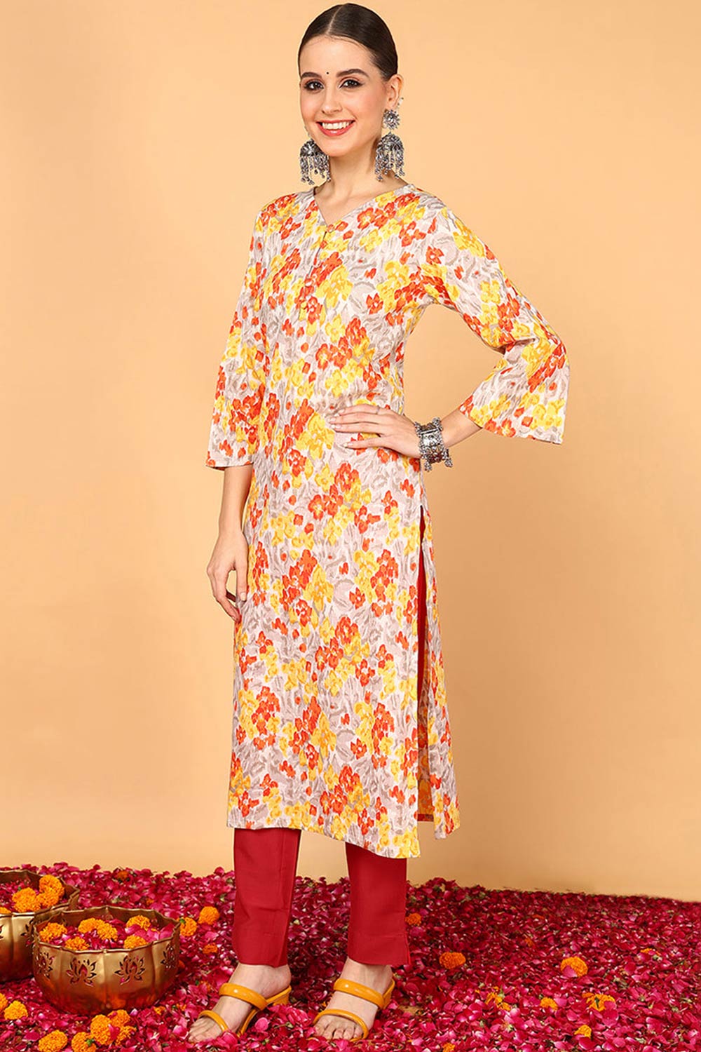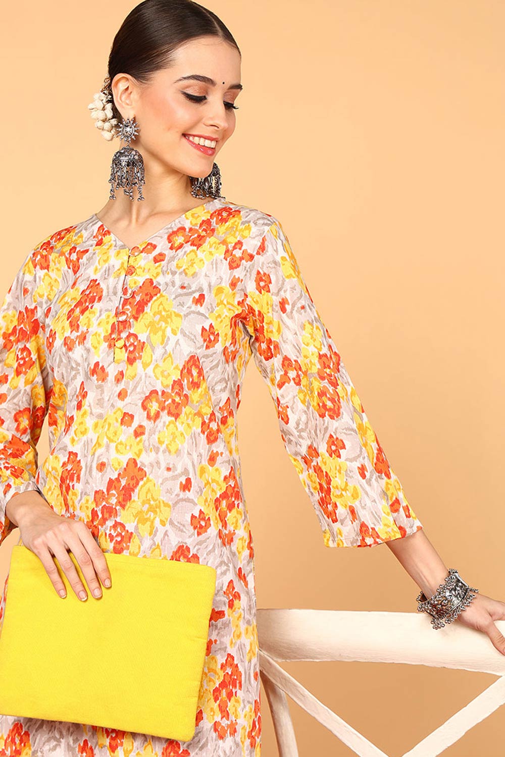 This Grey Cotton Floral Straight Kurti is a timeless choice for any occasion. The intricate prints add a touch of sophistication to the ensemble, while the comfortable rayon fabric ensures effortless elegance and ease throughout the day.