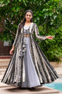 Grey Faux Georgette Digital Printed Indo-Western Suit Set