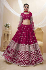 Hot Pink Georgette Sequins Embroidered Lehenga Set