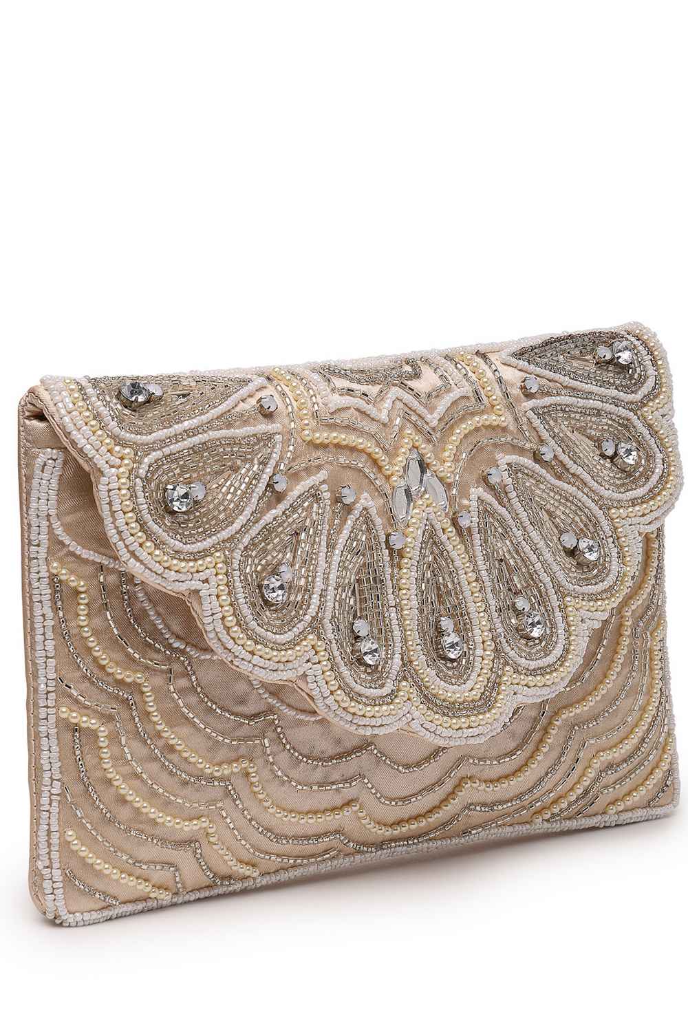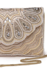 Ivory Scale & Paisley Embellished Satin Sling Bag