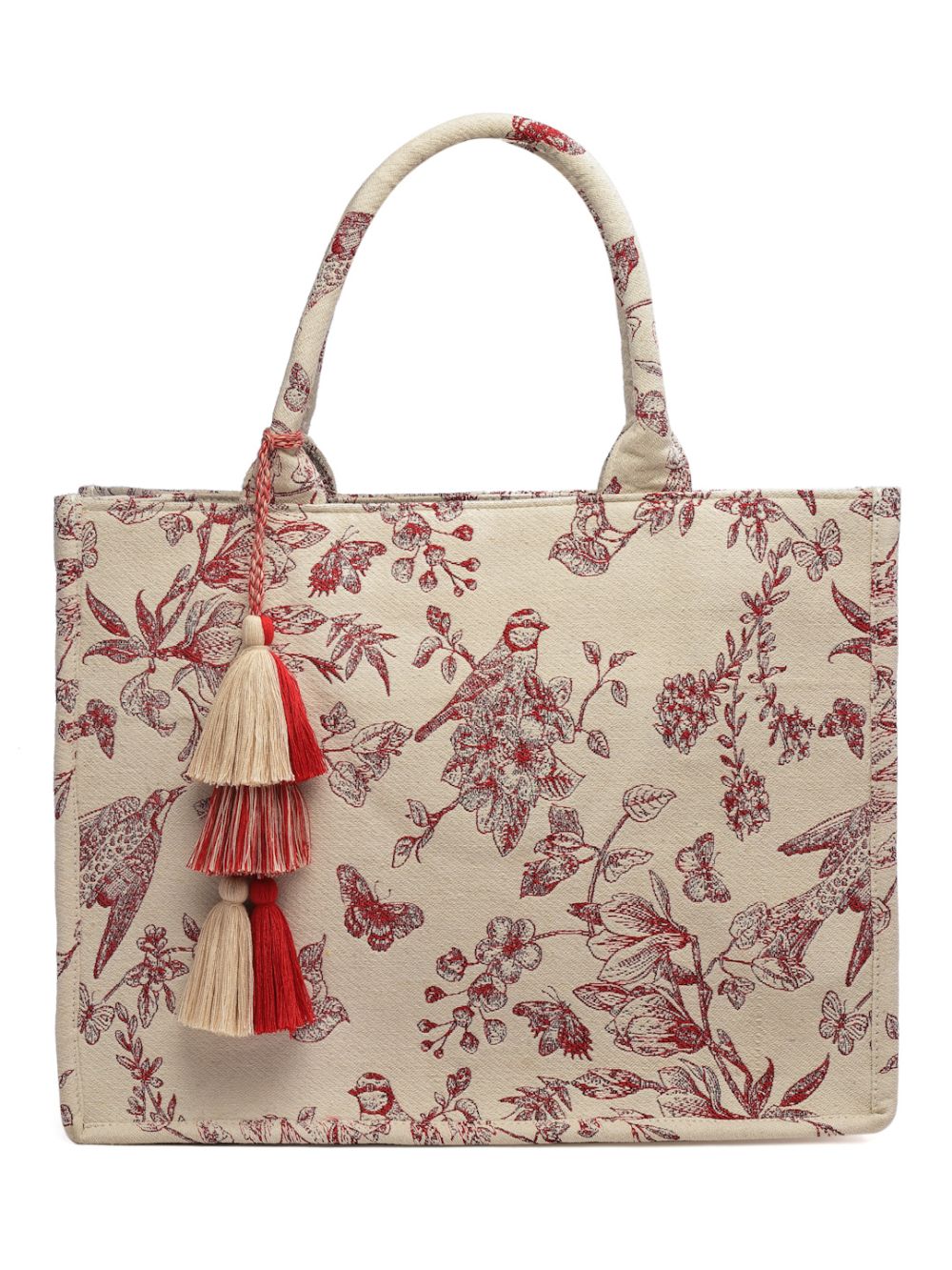 Jungle Natural And Wine Toile Jacquard Cotton Hand Bag