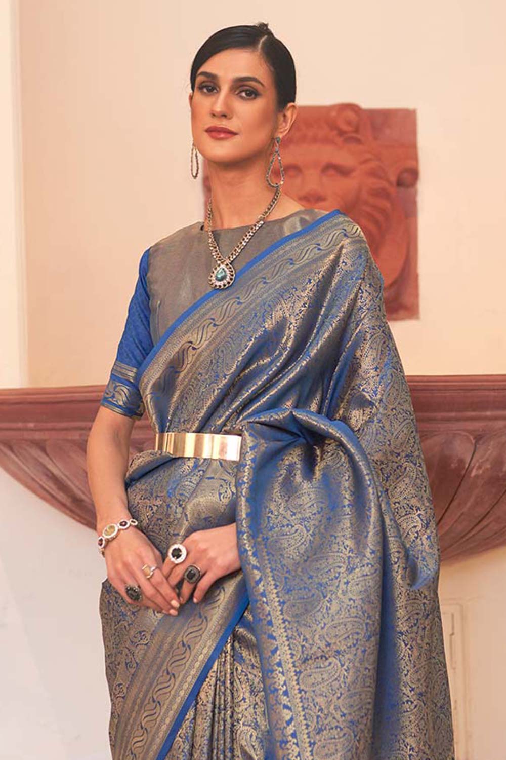Silk Blue Woven Handloom Saree is a sophisticated and elegant garment that combines the rich texture of silk with a captivating blue hue.