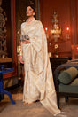 The Kairos Beige Silk Woven Saree combines the luxurious feel of silk with a timeless beige hue and intricate woven details, making it a sophisticated and versatile choice for any special occasion.