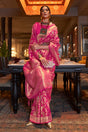 The Kairos Magenta Silk Woven Saree combines the opulent feel of silk with a bold magenta hue and intricate woven details, making it a stunning and versatile choice for any special occasion.