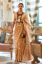 The Kalki Cream Tissue Woven Saree combines the lightweight, ethereal quality of tissue fabric with a sophisticated cream hue and intricate woven details, making it a graceful and elegant choice for any special occasion.