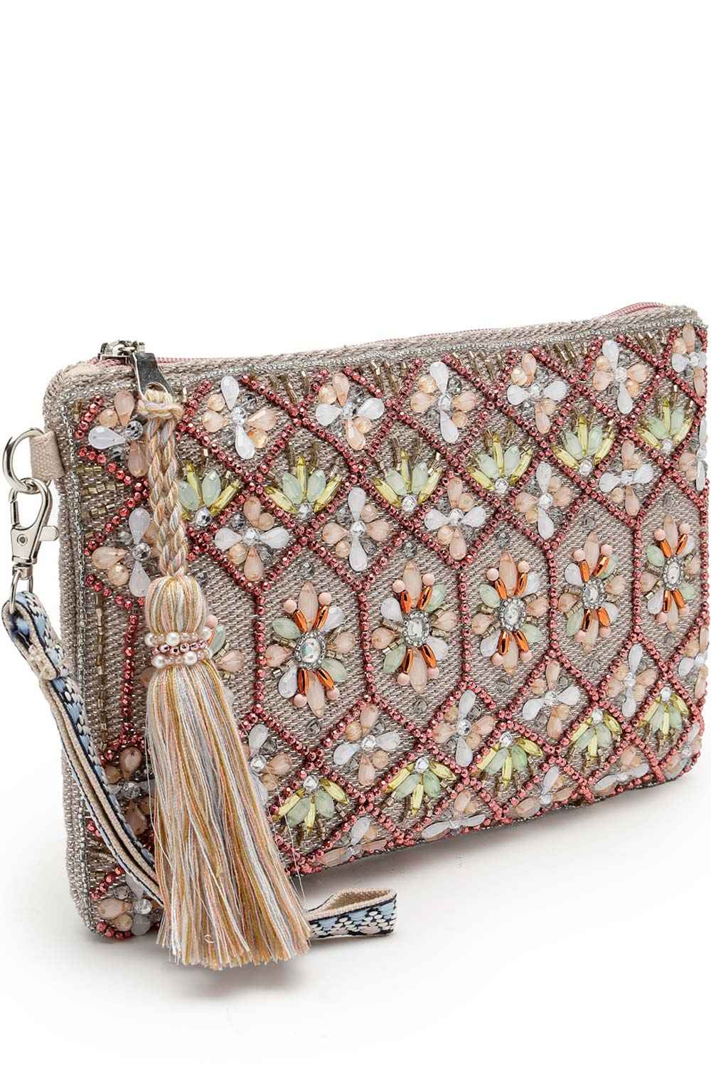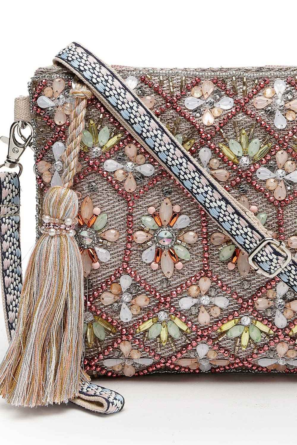 Kooky Silver And Multi Geometric Embellished Polycotton Sling Bag