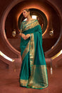 The Kurveen Sea Green Silk Woven Saree is a timeless and elegant choice, offering a blend of luxurious silk with a refreshing color that is perfect for making a stylish and memorable statement at any special event.