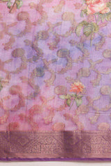 Lavender Cotton Digital Print Banarasi Saree