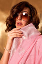 This saree is made from linen, a lightweight and breathable fabric known for its natural texture and durability. The color is lavender.