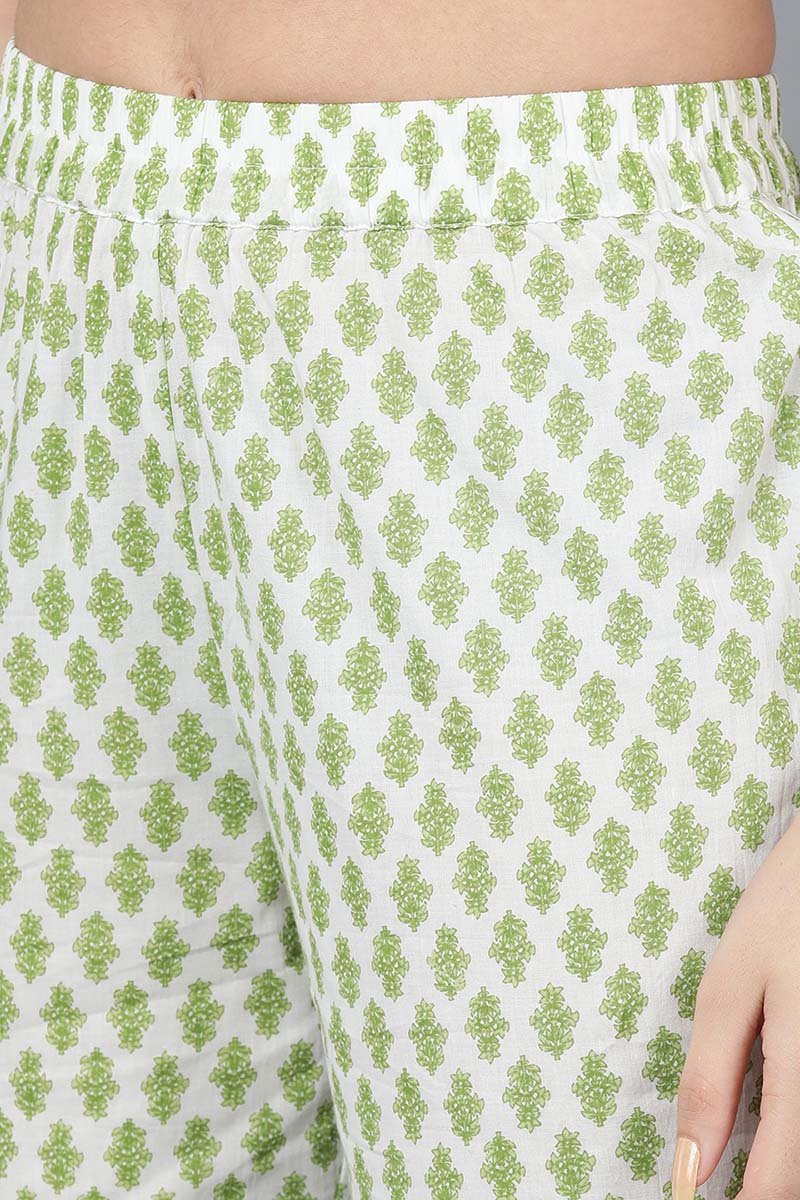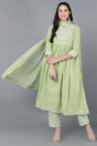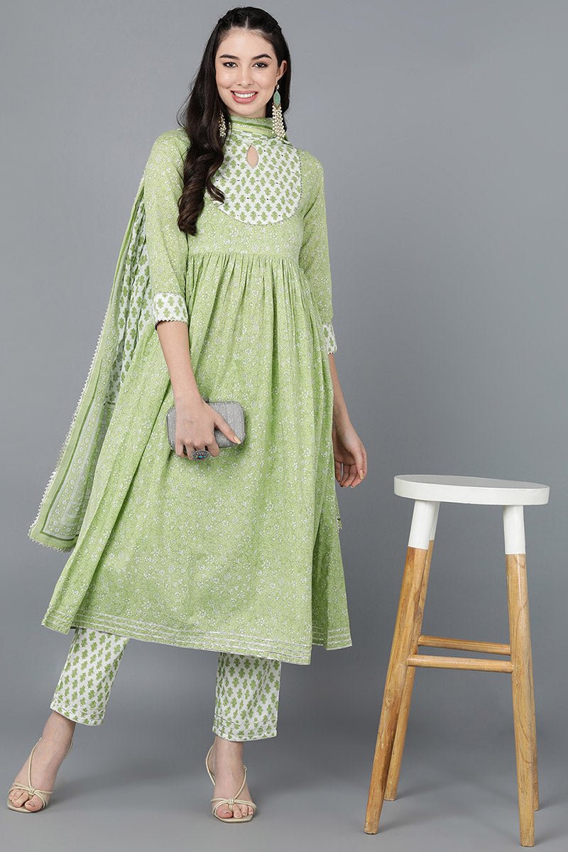 Light Green Cotton Flared Kurti Pant With Dupatta