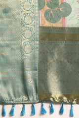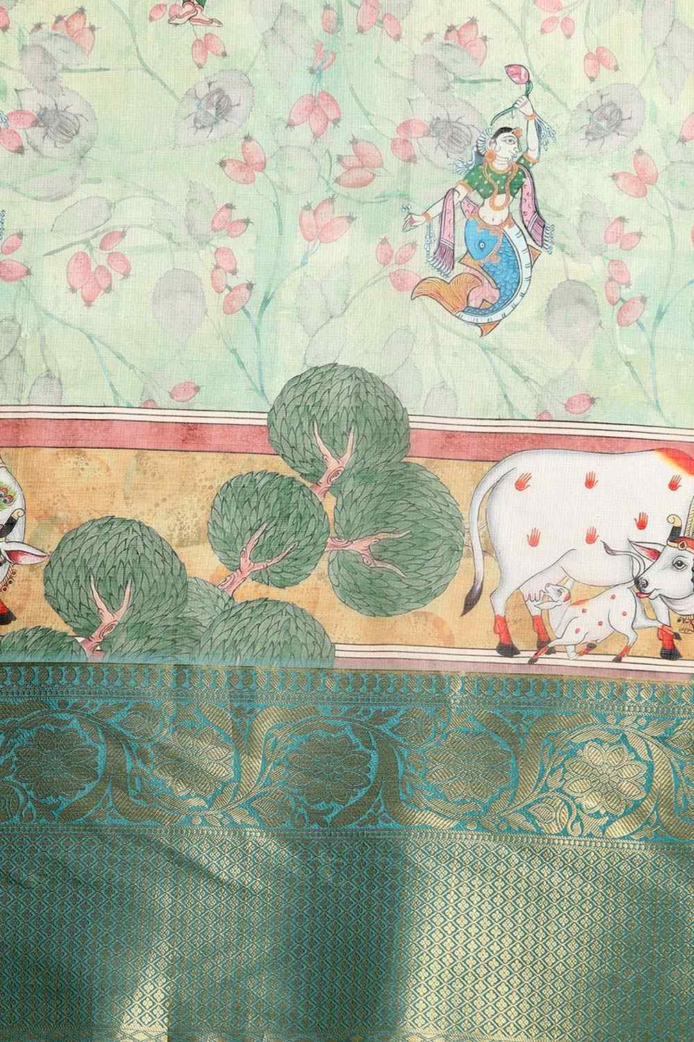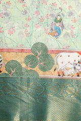 Light Green Muga Silk Animal Print Saree