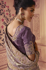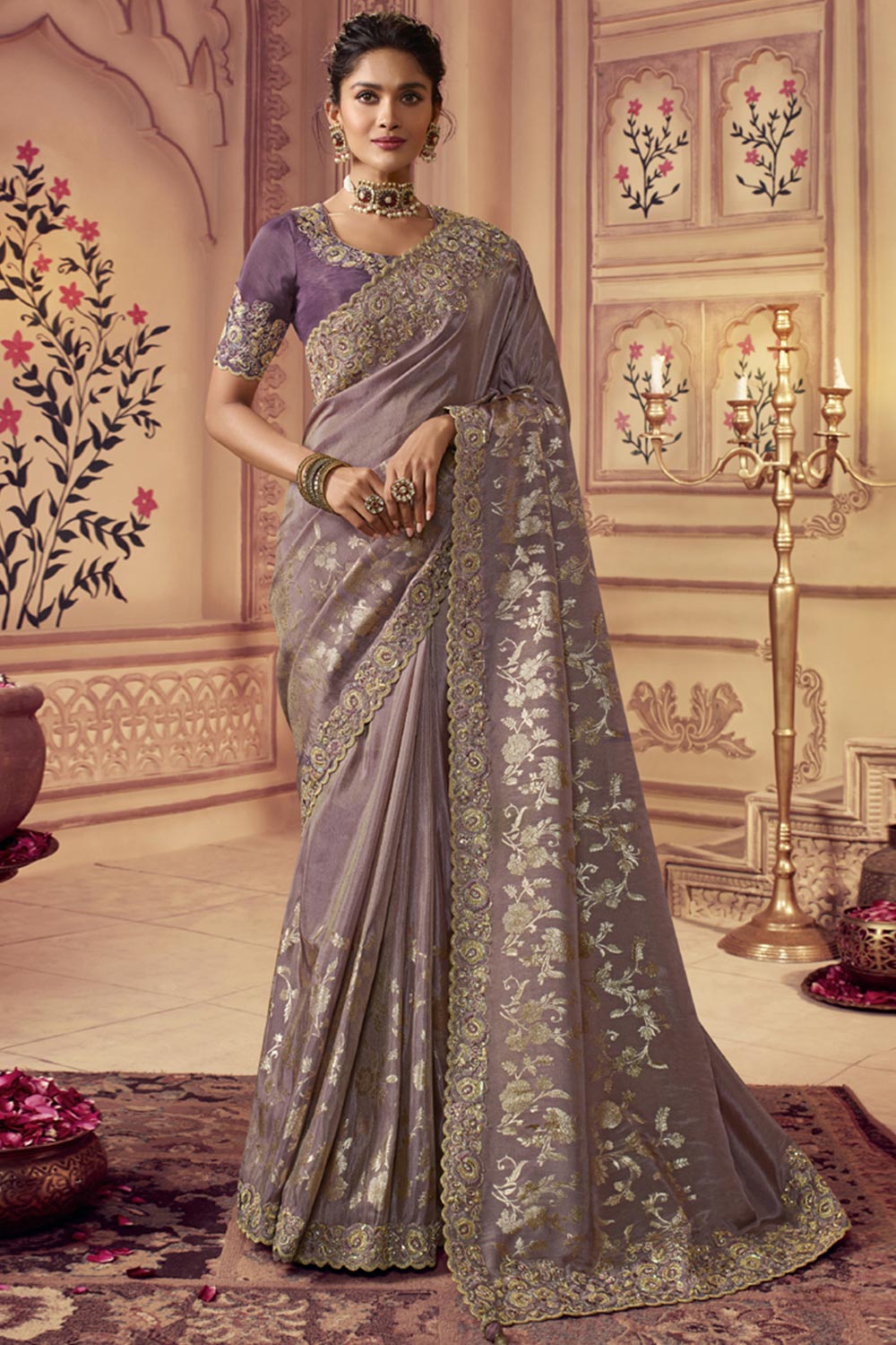Light Lavender Viscose Resham Embroidery Party Wear Designer Saree
