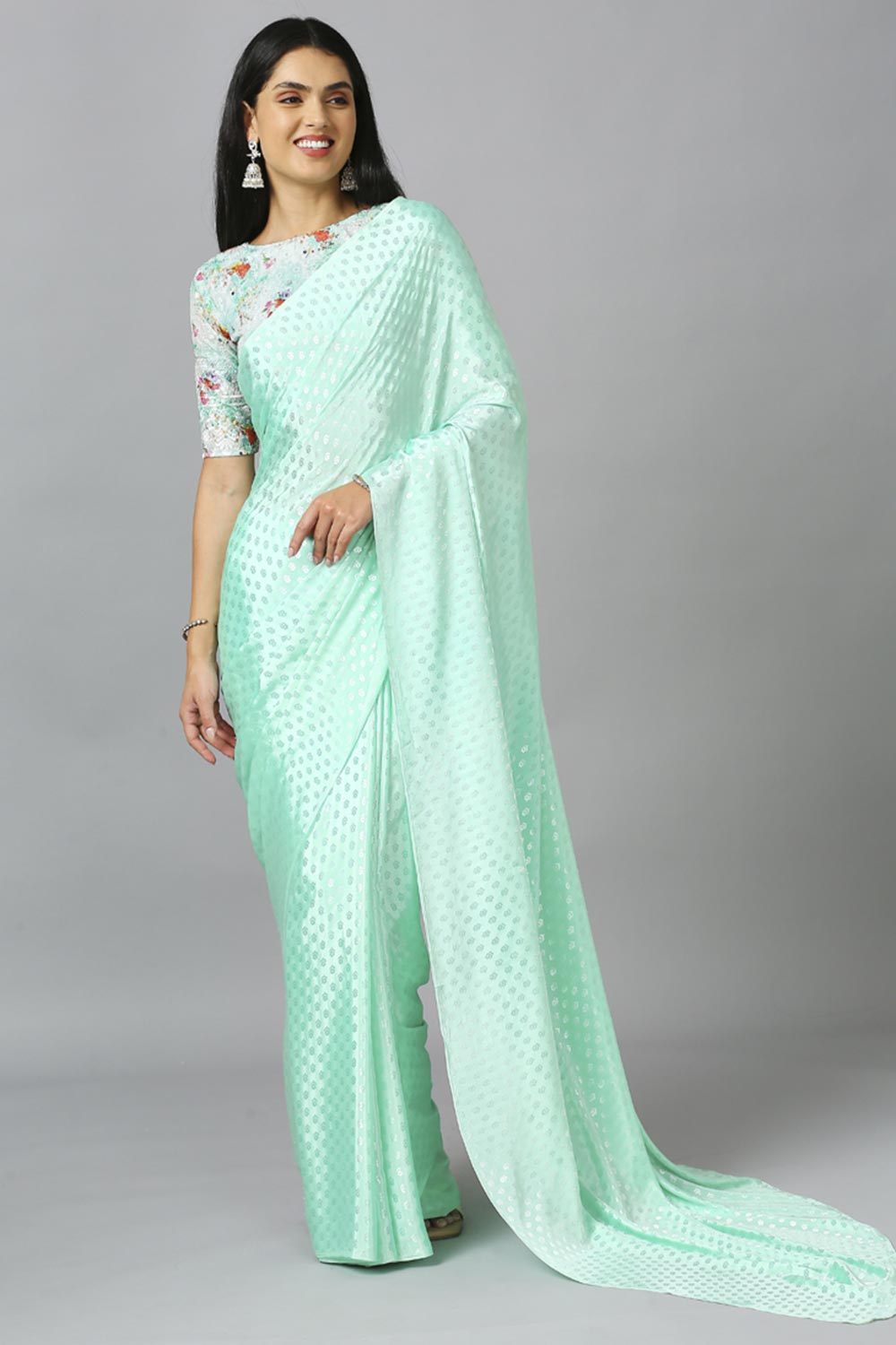Light Turquoise Chiffon Resham Embroidery Party Wear Designer Saree
