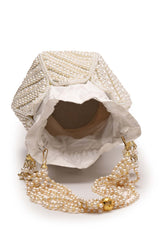 Lotus White And Gold Pearl Embellished Faux Silk Potli