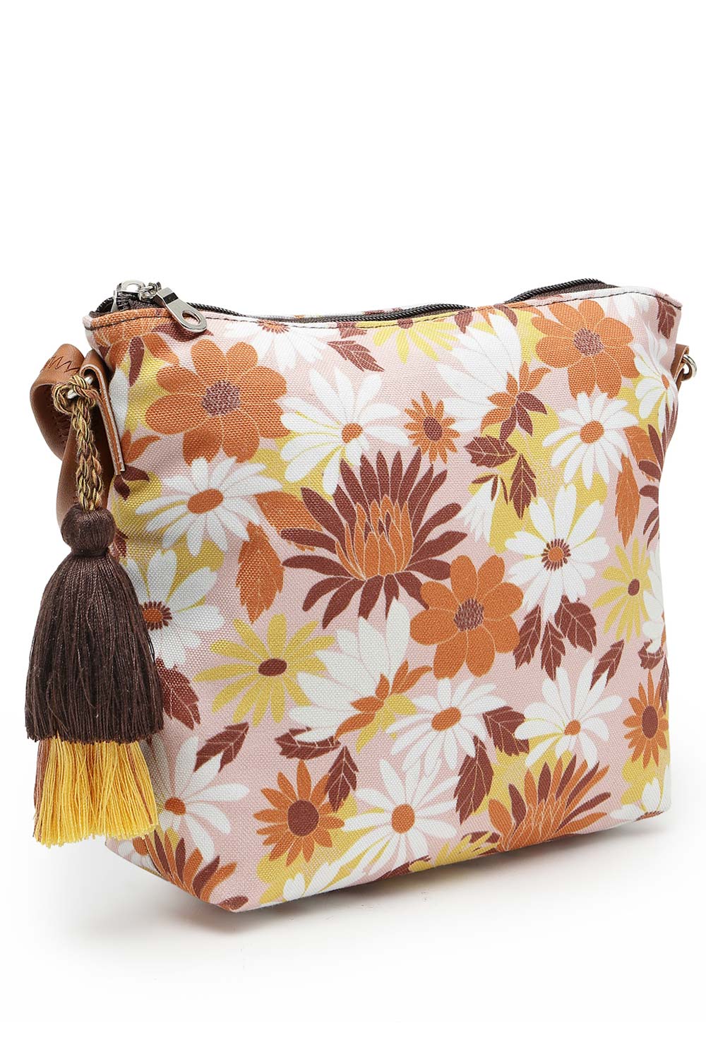 Lush Dusty Pink And Multi Floral Printed Polycotton Sling Bag