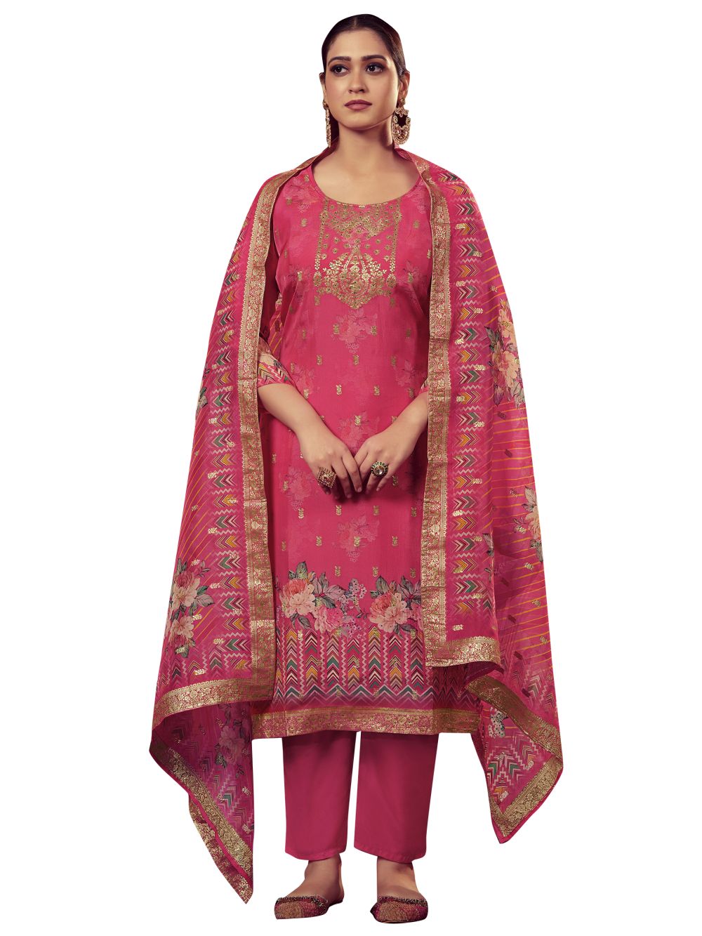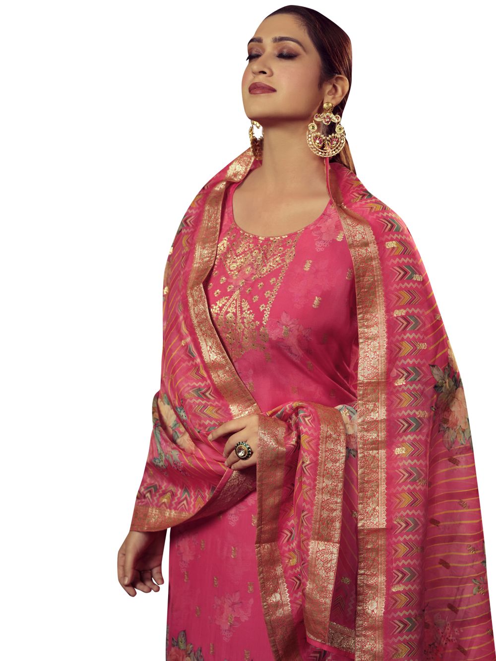 Magenta Organza Jacquard Dress Material