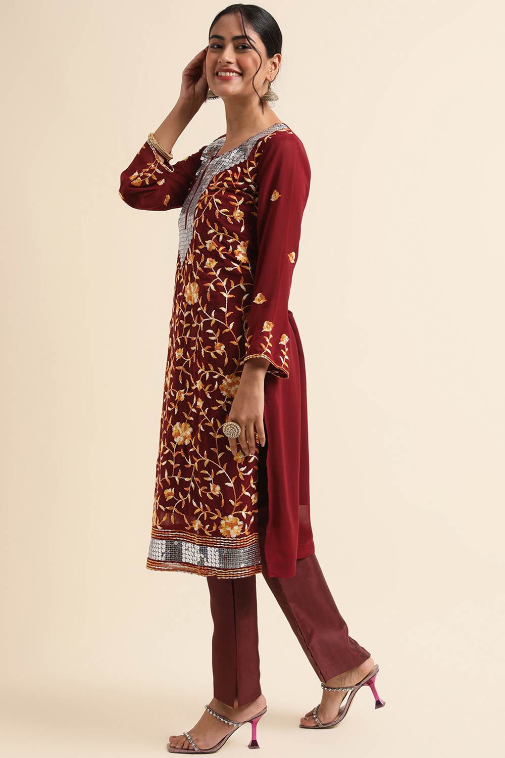 Maroon Faux Georgette Pakistani Suit