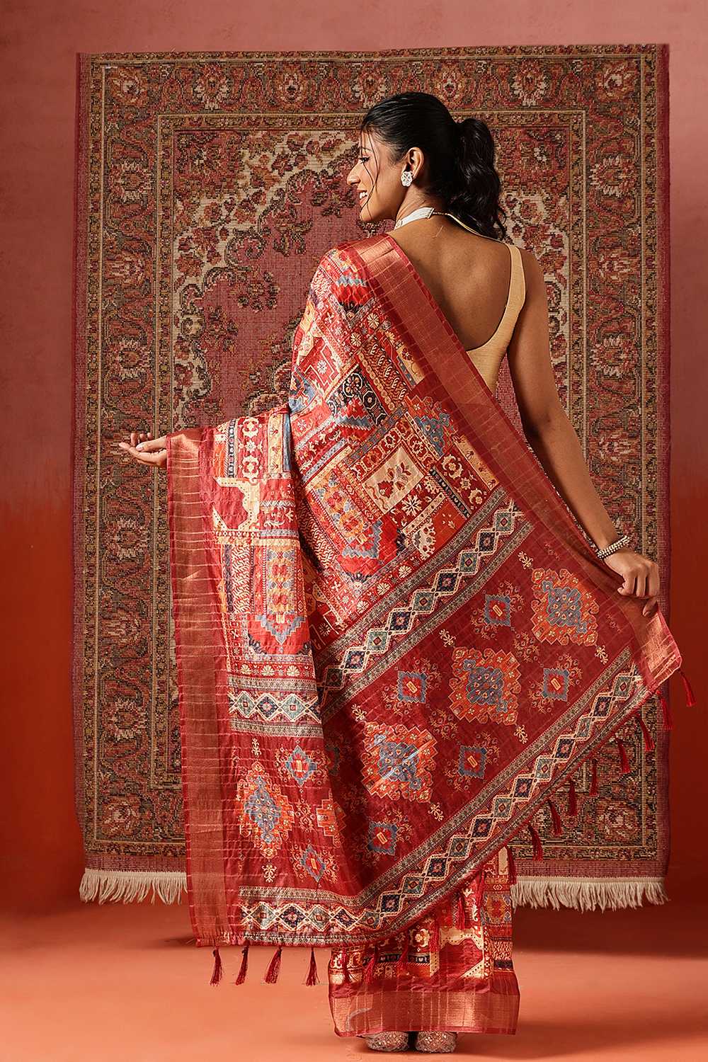 Elevate your wardrobe with our exquisite Ready to Wear Saree a masterpiece crafted to add timeless elegance to your style. Made from Silk this saree offers a perfect mix of comfort and sophistication. Adorned with Floral Printed it showcases intricate craftsmanship that speaks volumes of tradition and artistry. Perfect for Festive,Party this saree is a versatile addition to your collection, ensuring you stand out effortlessly. Pair it with elegant Jewelry, for a glamorous look. Add Clutches or Potli Bags and complete the ensemble with Wedges & Heels , making it a perfect choice for any event. Make a statement and embrace the elegance of Saree today