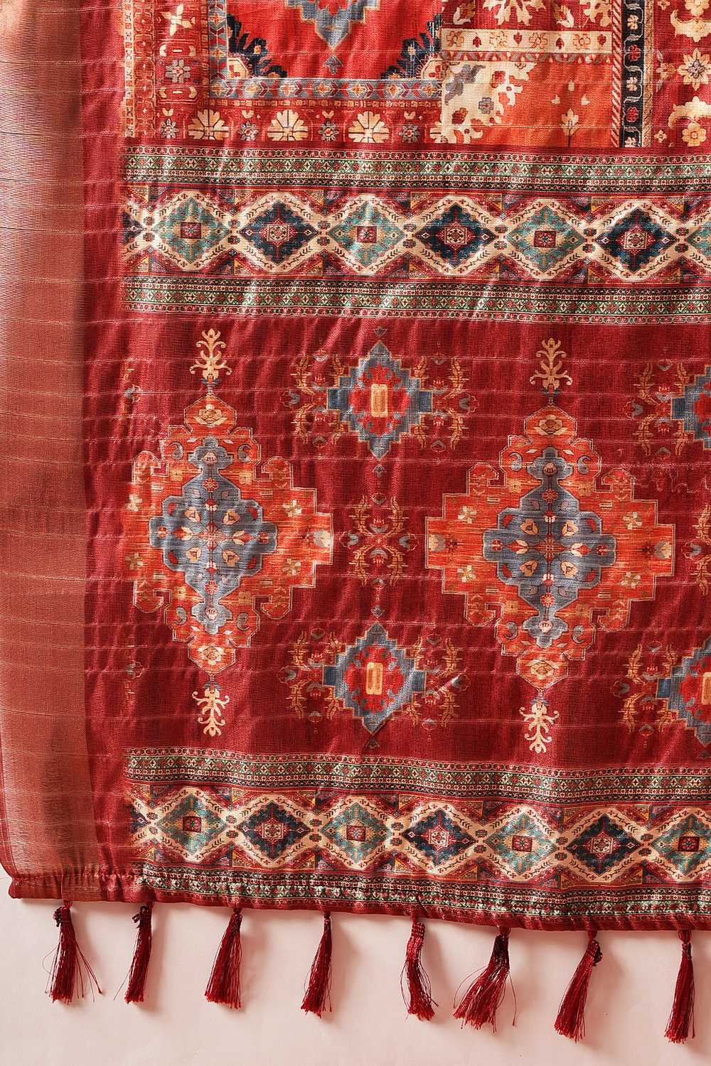 Maroon Floral Printed Silk Ready to Wear Saree