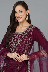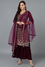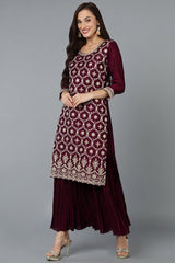 Maroon Silk Blend Embroidered Straight Sharara Suit Set