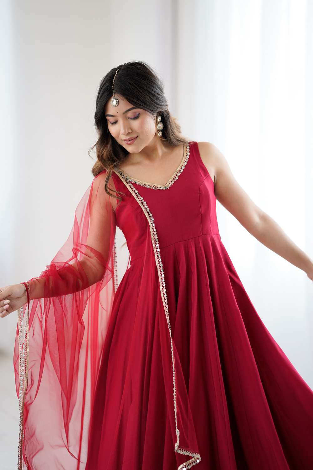 Step into effortless style with our Anarkali Suit Set crafted for the modern woman who cherishes tradition. Made from soft Chanderi it keeps you comfortable all day long. The Solid design lends a touch of sophistication to your outfit. Perfect for Casual this Anarkali Suit Set is a must-have for versatile styling options. Style it with minimalistic accessories and flats for a casual look or jewelry and heels for special events