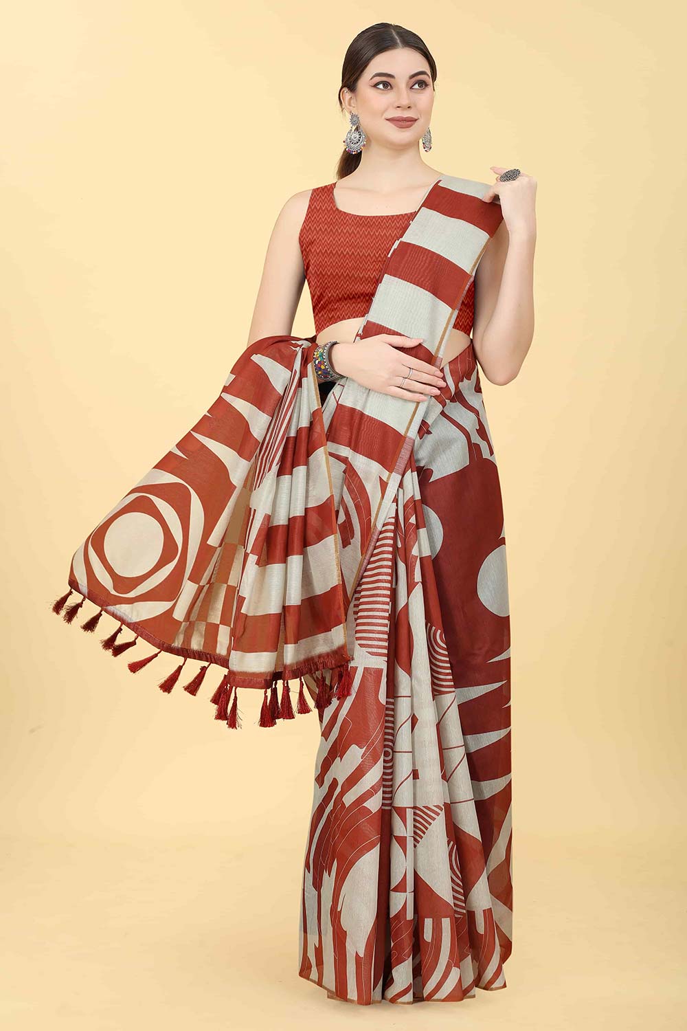 Presenting you Cotton Blend saree with beautiful tassels, available in multiple vibrant colors. Crafted with a lightweight fabric, this saree ensures comfort and ease of movement, making it perfect for parties and special occasions. Embrace its graceful drape and exquisite tassels, adding a touch of charm and glamour to your ensemble.