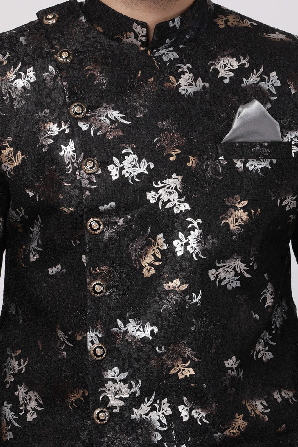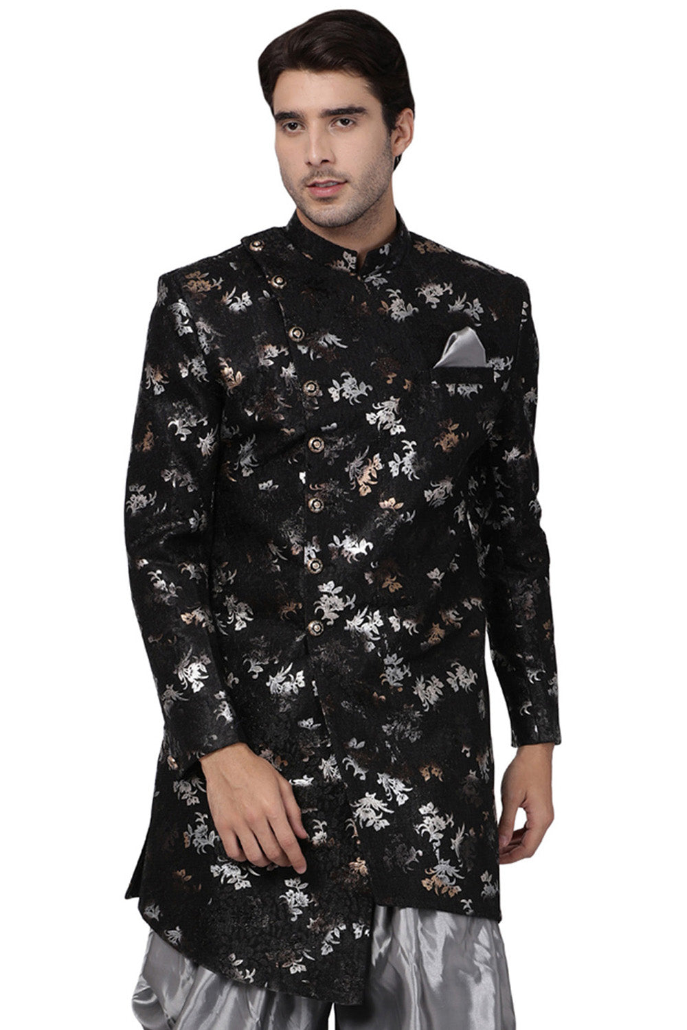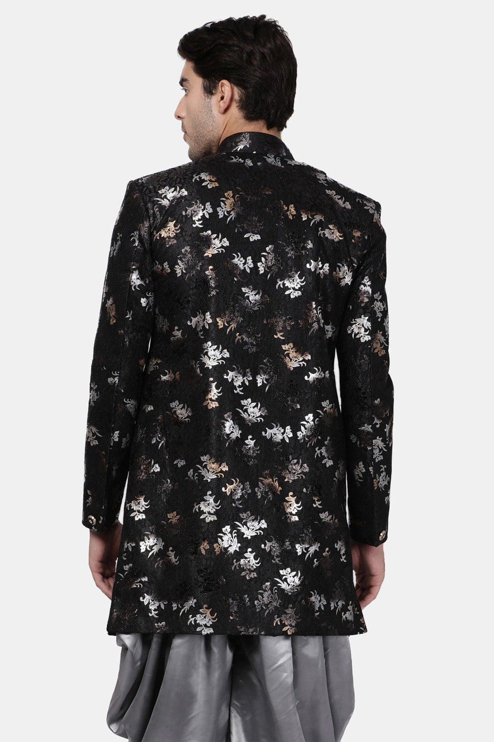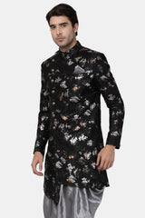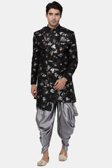 Men's Art Silk Sherwani In Black