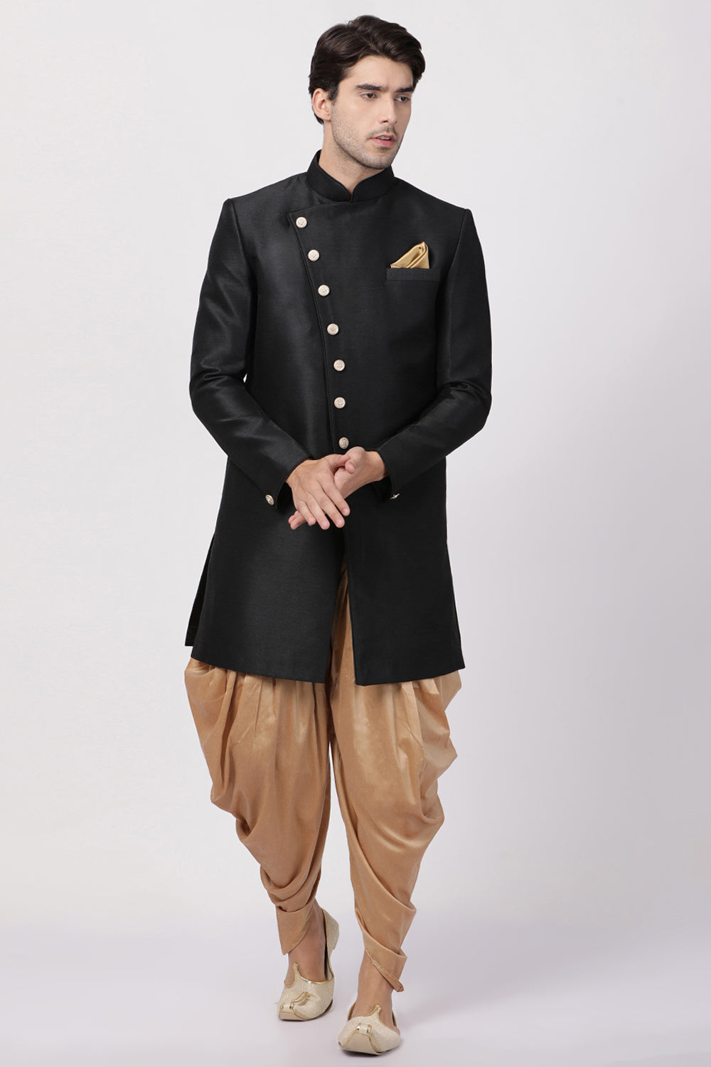 Men's Art Silk Sherwani Set In Black