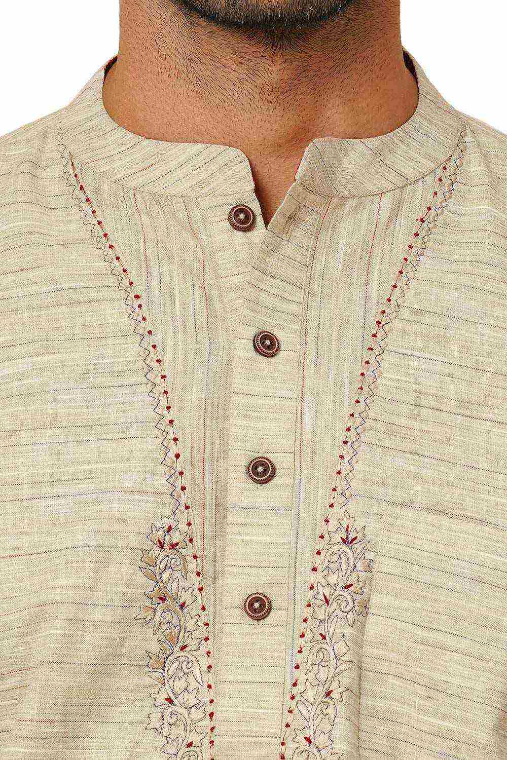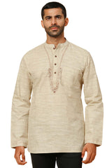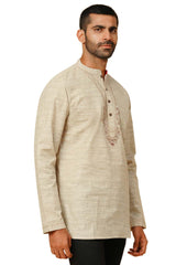 Men's Beige Poly Cotton Plain Short Kurta