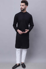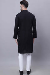 Men's Black Cotton Long Kurta Top