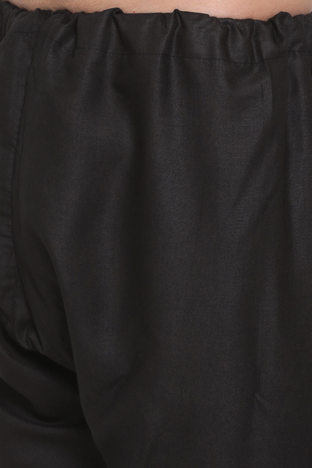 Men's Blended Cotton Solid Kurta And Patiala Set In Black