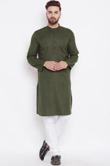 Men's Blended Cotton Solid Kurta Top In Olive Green