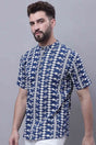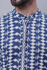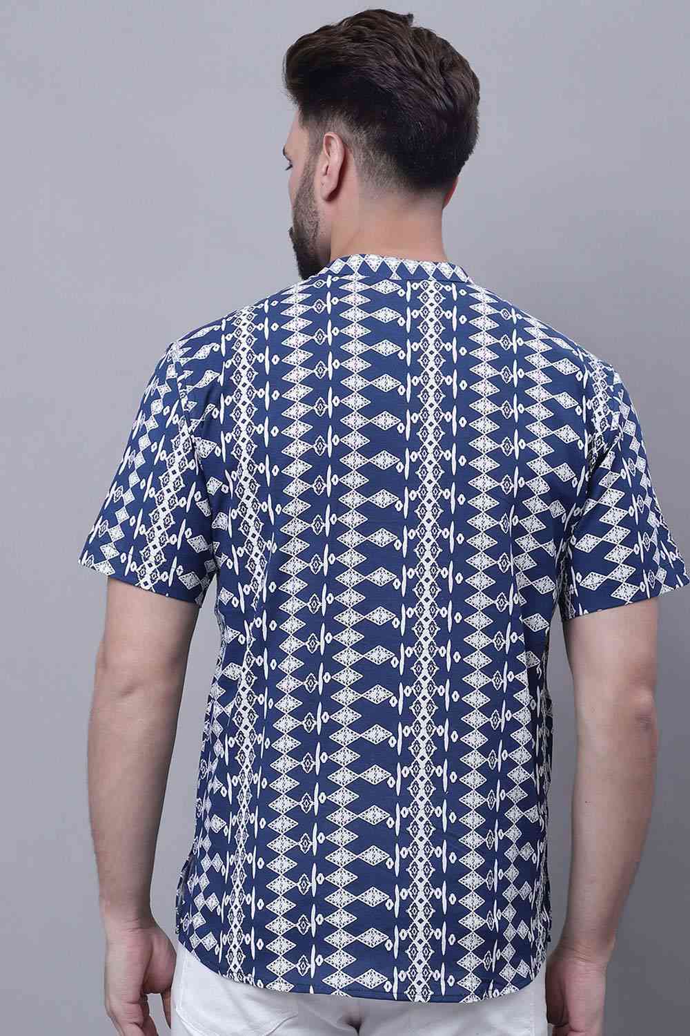 Men's Blue Cotton Printed Short Kurta Top