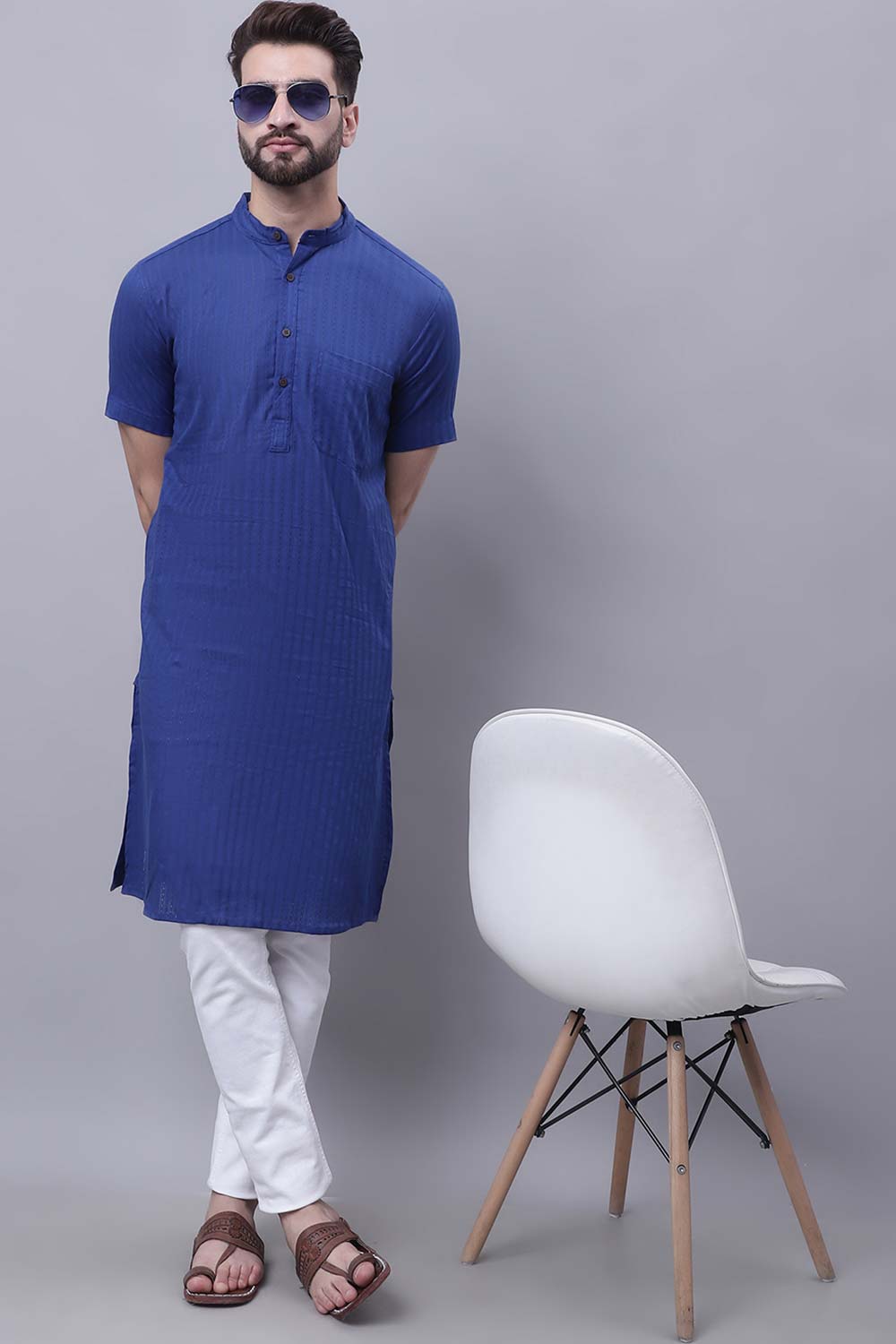 Men's Blue Cotton Long Kurta Top