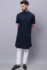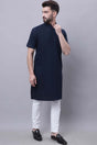 Men's Blue Cotton Solid Long Kurta Top