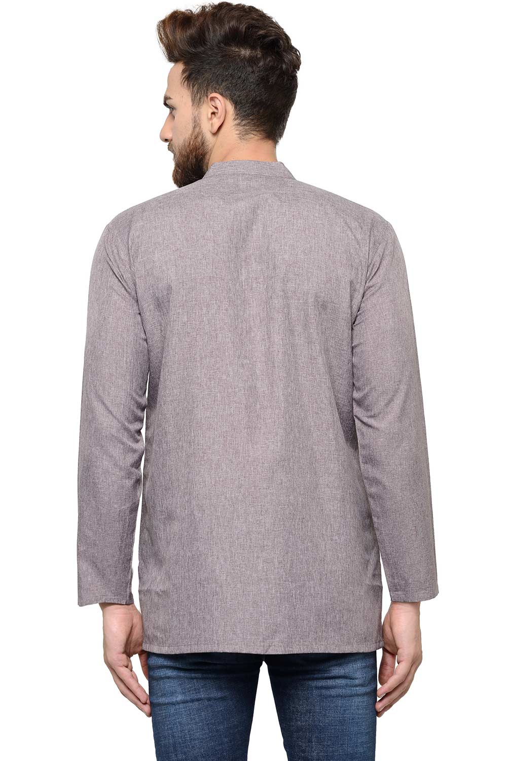 Men's Brown Soft Poly Cotton Embroidery Short Kurta