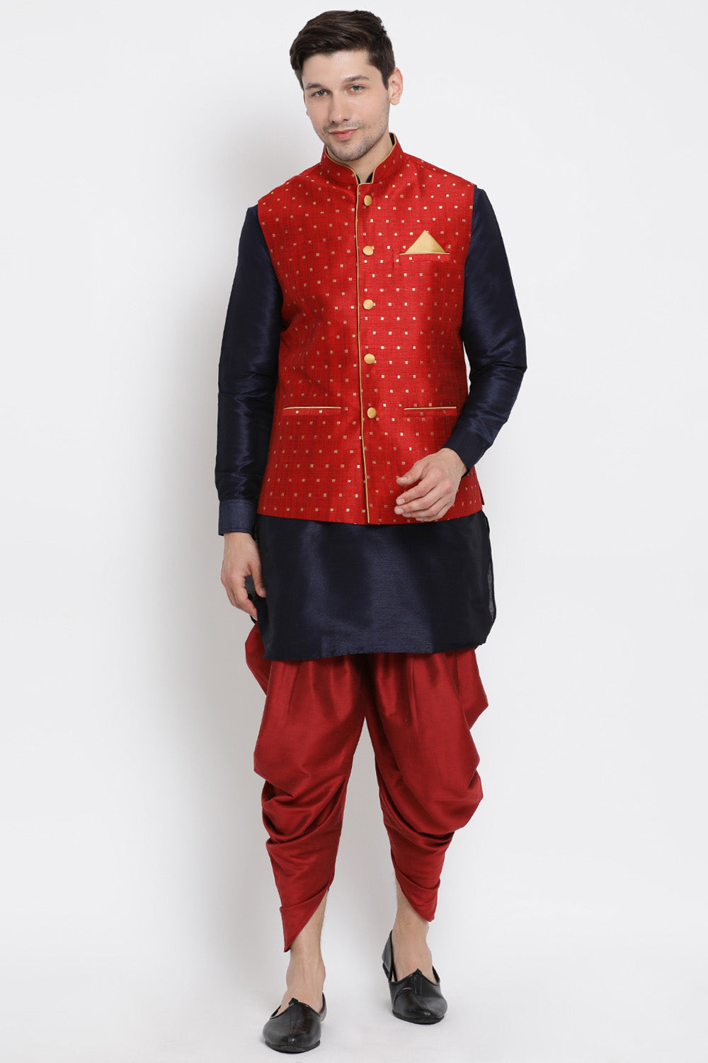 Men's Cotton Art Silk Kurta Set In Dark Blue
