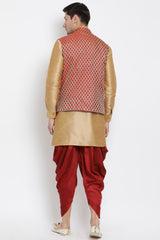 Men's Cotton Art Silk Kurta Set In Gold